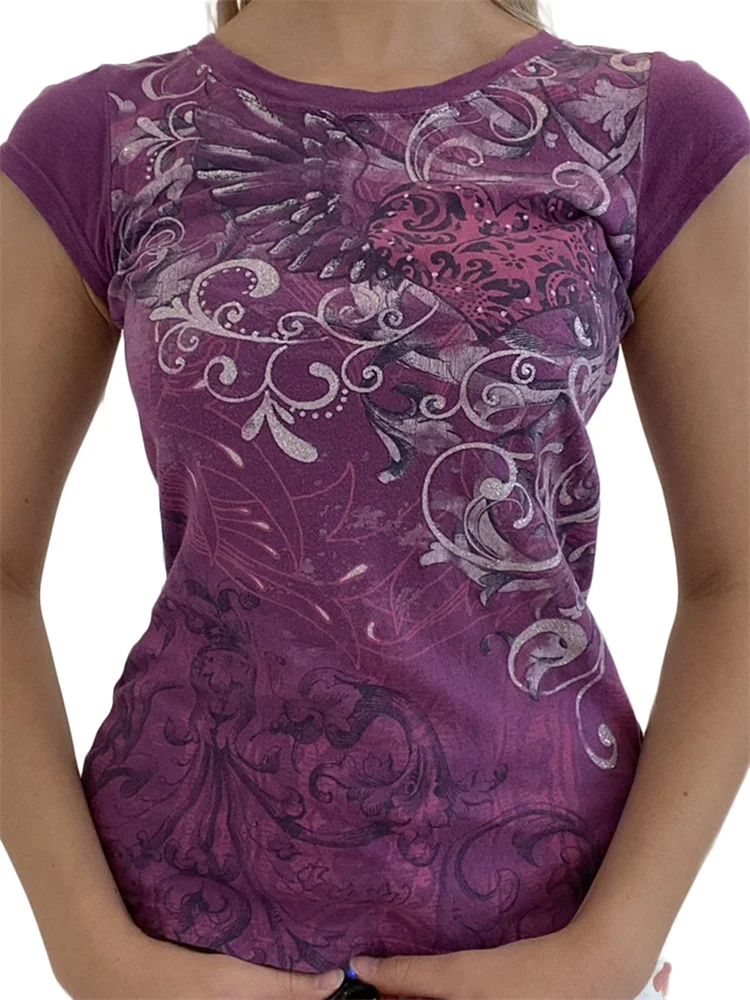 Womens vintage printed short sleeve t-shirt — This casual round neck cropped tops flatters any figure with a regular slim fit effect and form flattering cut. Enjoy wearing fashionable t-shirt without sacrificing comfort, classic color to best suit your taste and style.
